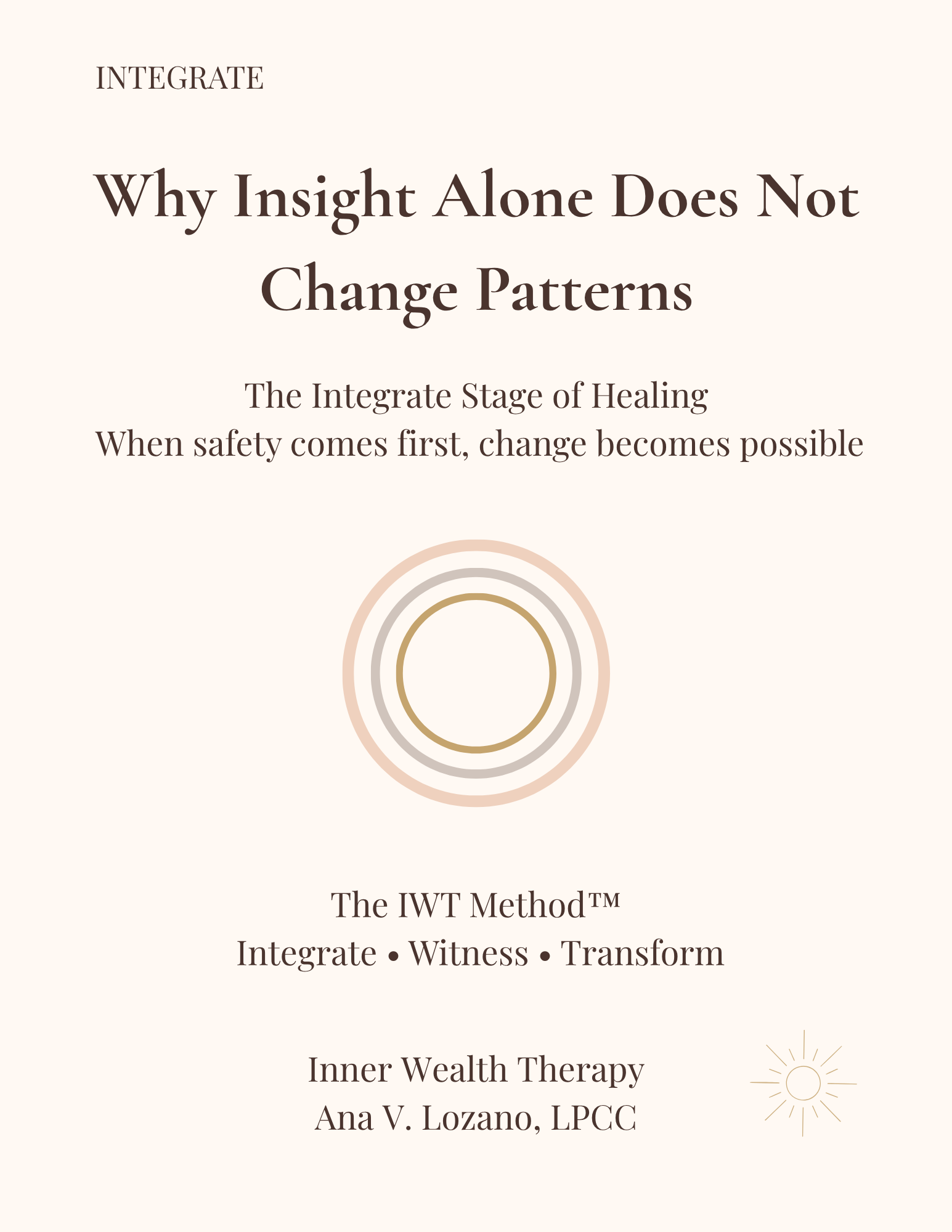 The Integrate Guide introduces the first stage of the IWT Method™, a stage-based model of healing developed through trauma-informed psychotherapy, attachment theory, and nervous system work.